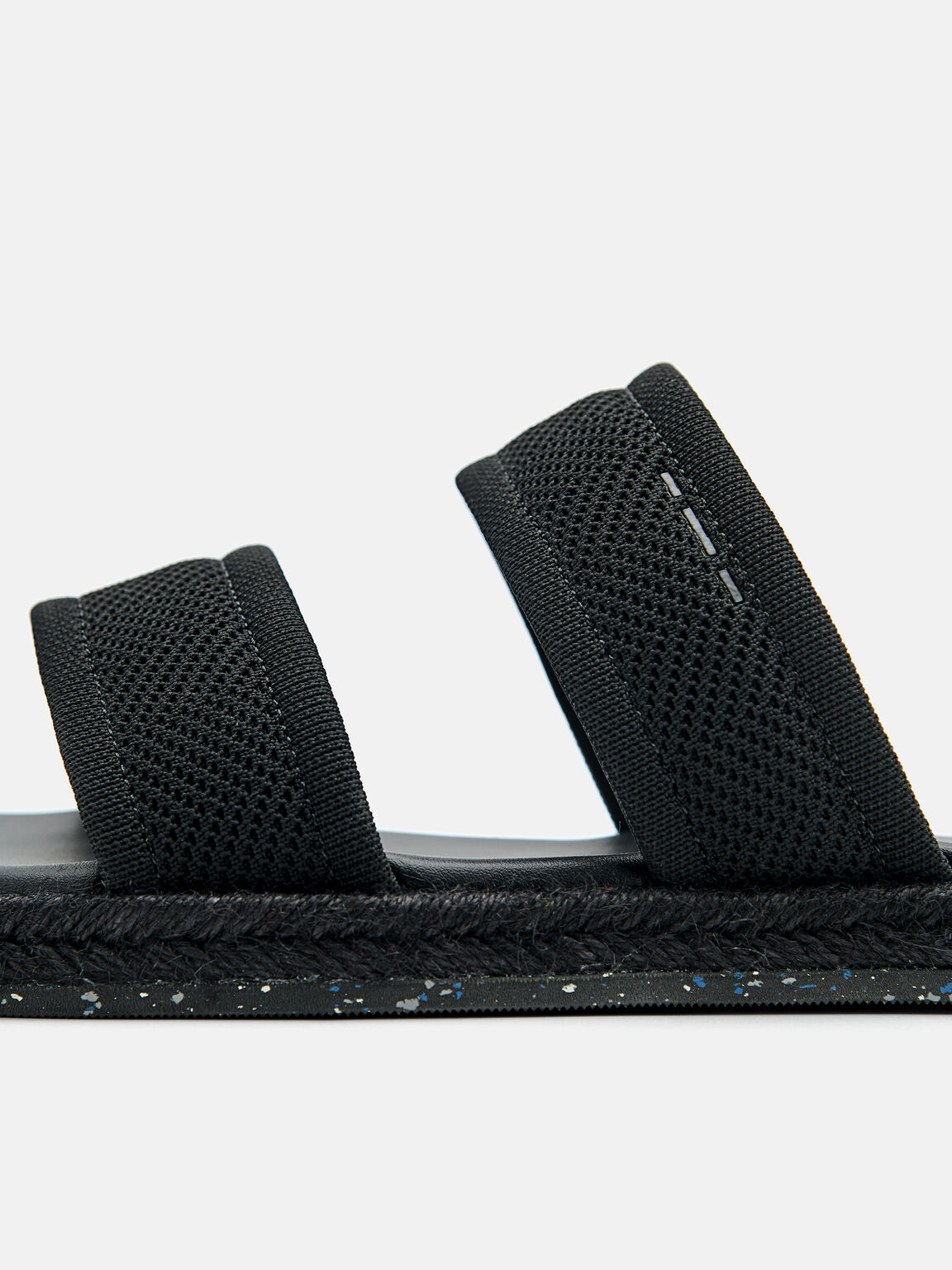 These knitted sandals, crafted from recycled jersey, offer effortless style and everyday comfort with a double-band upper and plush footbed, reflecting a commitment to thoughtful design.