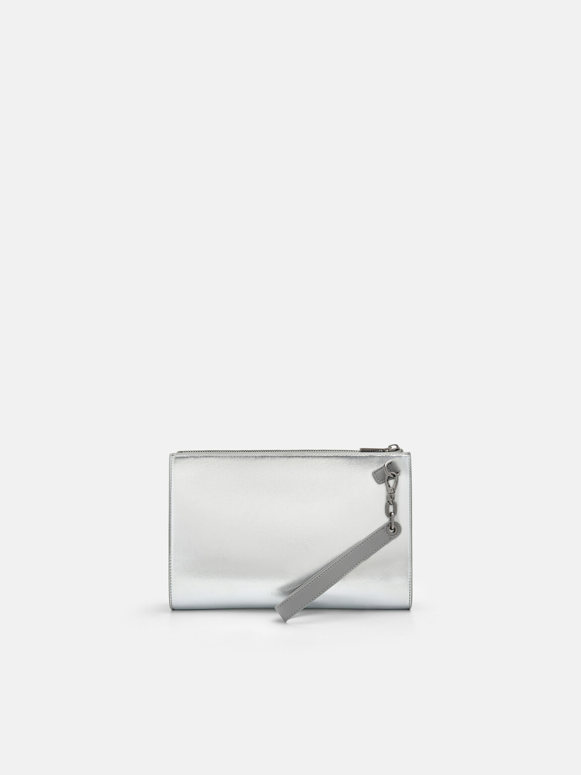 Crafted with clean, contemporary lines, the Edge Clutch Bag in silver stands out with its detailed yet understated hardware accents. The zipper closure ensures secure storage of essentials, making it ideal for the discerning modern man on the move. Equipped with a removable wristlet for versatile carrying options, effortlessly complementing a refined and stylish lifestyle.